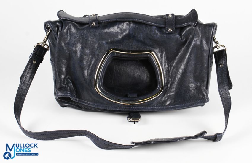Balenciaga blue leather convertible tote, the large bag has original mirror inside, size #36cm x 25cm, 11cm when folded down, with its original cotton protective bag - in good used condition