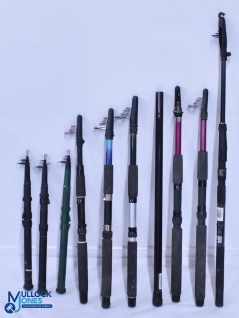 Group of 9x Telescopic Fishing Rods - inc Shakespeare XK4000 with 8x other unbranded and a 2m extending landing net handle (10)