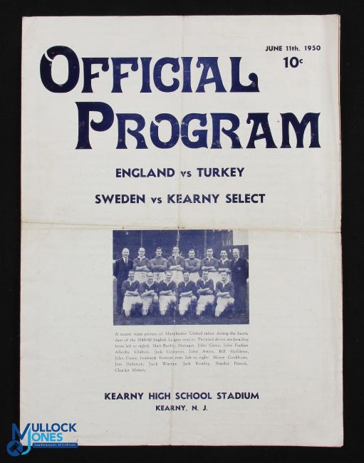 1950 Manchester Utd USA tour match programme Besiktas (Turkey) v United at Kearny High School Stadium 11 June 1950 (billed as Turkey v England) (also has Jonkopping v Kearny select); large issue, pocket folds, very scarce issue. (1)