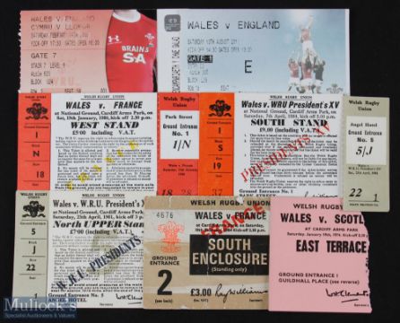 1974-2011 Wales 5/6 Nations etc Rugby Tickets (7): v England 2009 & Aug 2011 (RWC warm-up); v Scotland 1974; v France 1980 & 1984; and v WRU President's XV 1981 & 1984. VG