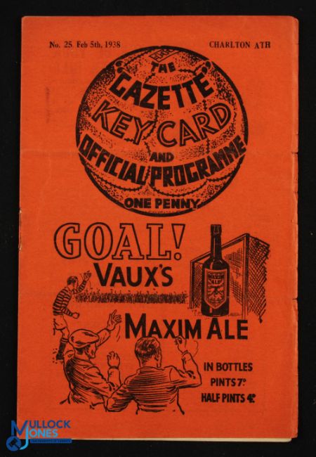 Pre-War 1937/1938 Middlesbrough v Charlton Athletic Div. 1 match programme 5 February 1938; slight crease, score to team page. (1)