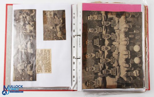 Manchester United "scrapbook" mainly covering the period 1957/58 Red Star match to the 1958 FA Cup Final and then on to the 1960s; full of newspaper photos and articles including the 1958 whirlwind romance of Bobby Charlton (which ended in tears!) and then onwards to the late 1960s. Also Evening Chronicle dated 28 March 1956 and Manchester Evening News 29 March 1956; condition fair at best. (A Lot)