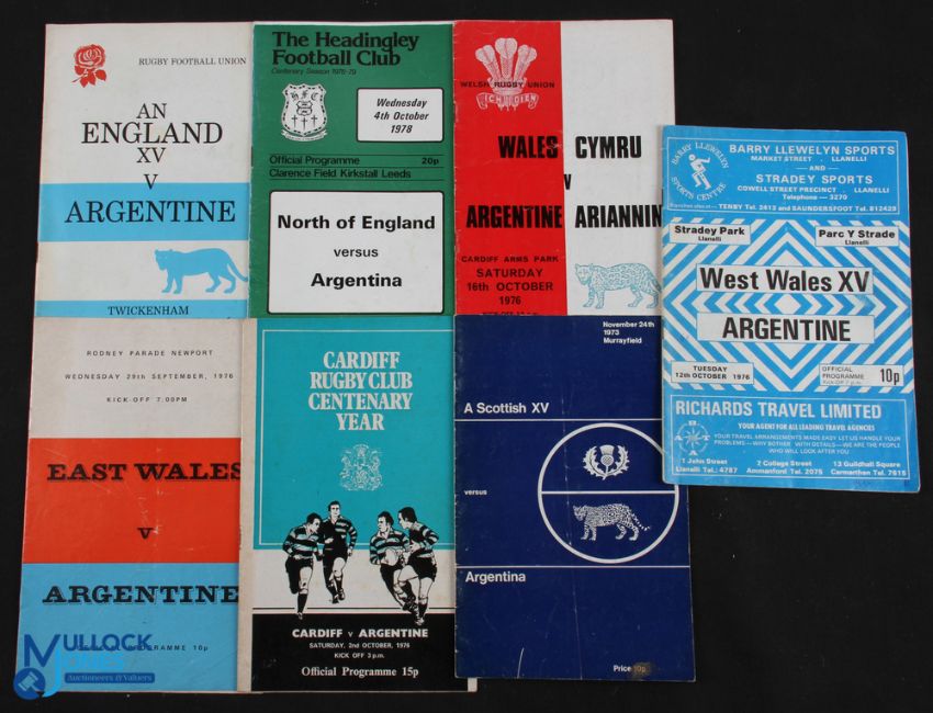 1973-1978 Argentina in the UK Rugby Programmes (7): v Scotland XV 1973; v West Wales, East Wales, Cardiff & Wales 1976; v Headingly and England XV 1978. G/VG