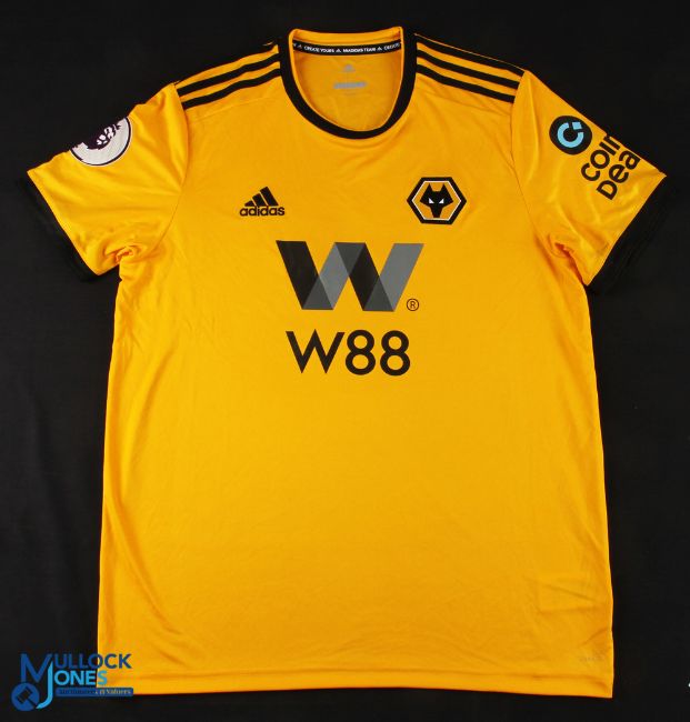 Ruben Neves No 8 Wolverhampton Wanderers 2018/19 home match issue football shirt - Adidas / W88, Premier League and Coin Deal sleeve badges, size L, short sleeve