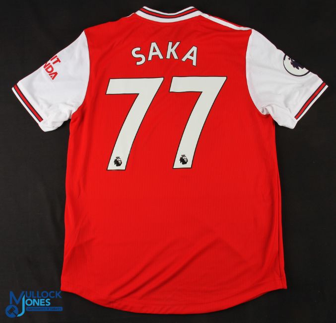 Bukayo Saka No 77 Arsenal 2019/20 match issue home football shirt - Adidas /Fly Emirates, PL and Visit Rwanda sleeve badges, size 6, short sleeve