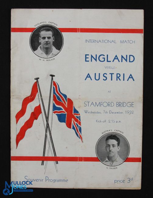 1932 England v Austria football programme date 7 December at Stamford Bridge, marks, folds apparent, A/G overall