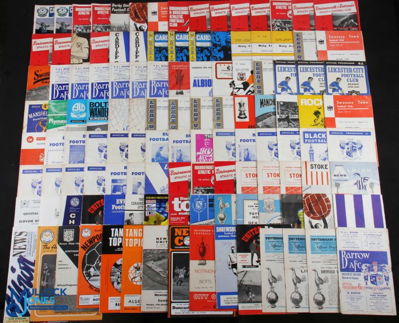 1960-70 English League Football programmes, a mixed lot of league and a few cup matches, testimonials etc with noted teams with Qty- Rochdale, Coventry City, Cardiff City, West Bromwich Albion, Walsall, Swansea, Darlington, Bournemouth, Nottingham Forest - in mixed condition a good collection (box of #500)
