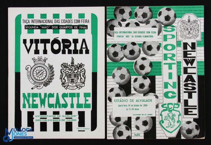 1968/69 UEFA Cup Sporting Lisbon v Newcastle Utd programme 30 October 1968 (scarce issue); Vitoria v Newcastle Utd programme 26 March 1969; fair/good. NB: The season Newcastle Utd were the trophy winners. (2)