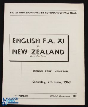 1969 New Zealand (World Cup Squad) v England FA programme at Seddon Park, Hamilton 7 June 1969, large b&w issue, good. (1)