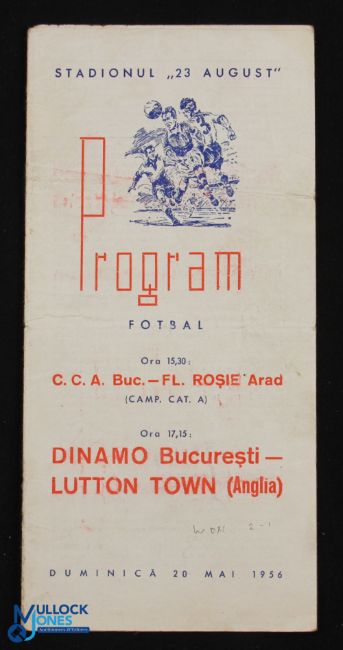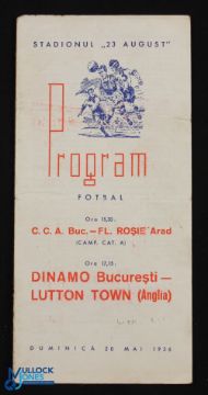 1956 Dynamo Bucharest v Luton Town friendly match programme 20 May 1956; small gatefold issue, fair condition. (1)