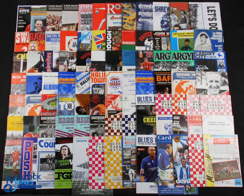 1960-70 English League Football programmes, a mixed lot of league and a few cup matches, testimonials with noted teams of Manchester United, Crew, Wolves, Cardiff, QPR, Plymouth Argyle, Grimsby, Halifax, Shrewsbury and much more, in good used condition (box of #300)