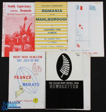 European Tourists in NZ Rugby Programmes etc (5): N Auckland & Waikato v France, 1961; S Canterbury & Marlborough v Romania, 1975; & the NZRFU Newsletter No. 1, 1969. Good