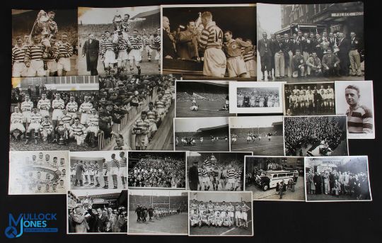 Halifax RLFC Photographs (22): Substantial selection, six large and 16 smaller featuring especially their 1931 & 1939 Challenge Cup wins and losses in 1920-21. Pics at Wembley & after and portraits, some signed. G/VG
