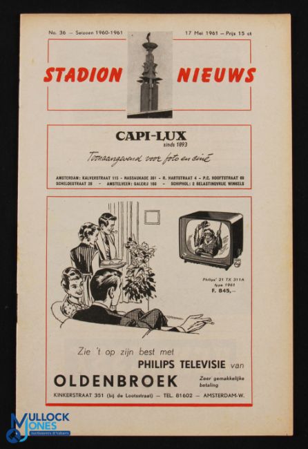 1960/61 Amsterdam Select XI v Tottenham Hotspur tour match friendly 17 May 1961 (Spurs double winners); good. (1)