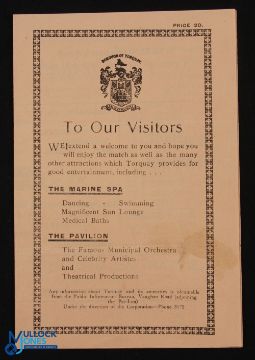 War time 1945/1946 Torquay Utd v Brighton & Hove Albion 27 April 1946, small 4 page issue; fair/good. (1)