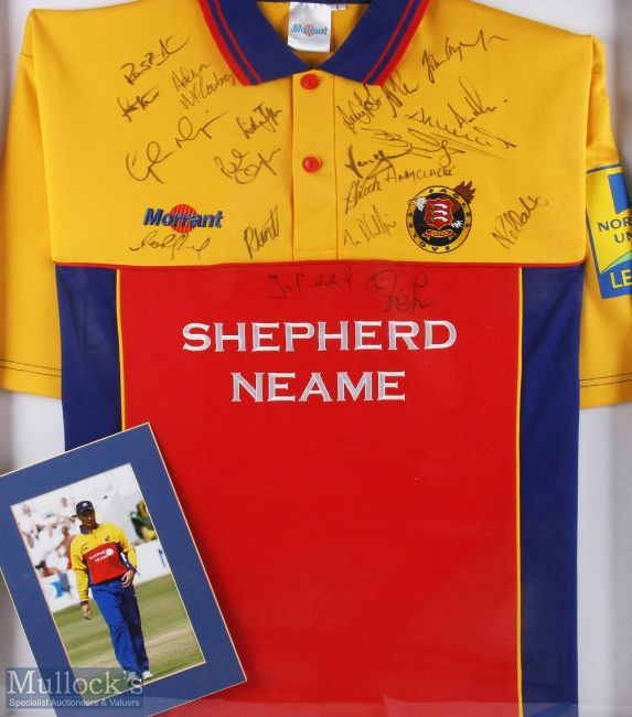 2004 Essex CCC Cricket Multi Signed Shirt - J E Bishop S A Brant A J Clarke, A N Cook, A P Cowan, D Gough, A P Grayson, N Hussain, W I Jefferson, A McCoubrey, plus others, framed and mounted under glass - size #75cm x 85cm