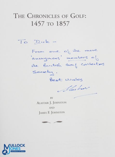 Johnston, Alistair, J & Johnston, James F (signed) - The Chronicles of Golf 1457 to 1857 limited edition Book 1993 ltd ed 8/900, illustrated, HB with DJ and cloth slip case with colour print of The Grand Match - 734pp, comes with a couple of covering letters form the author to the previous owner in good condition