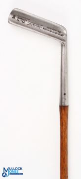 Percival & Whitcombe Patent 'Per-Whit' semi-circular blade putter c1926 showing clear maker's marks to the rear and punch dot central face markings fitted with a 5.25" hosel fitted with full length stained leather grip