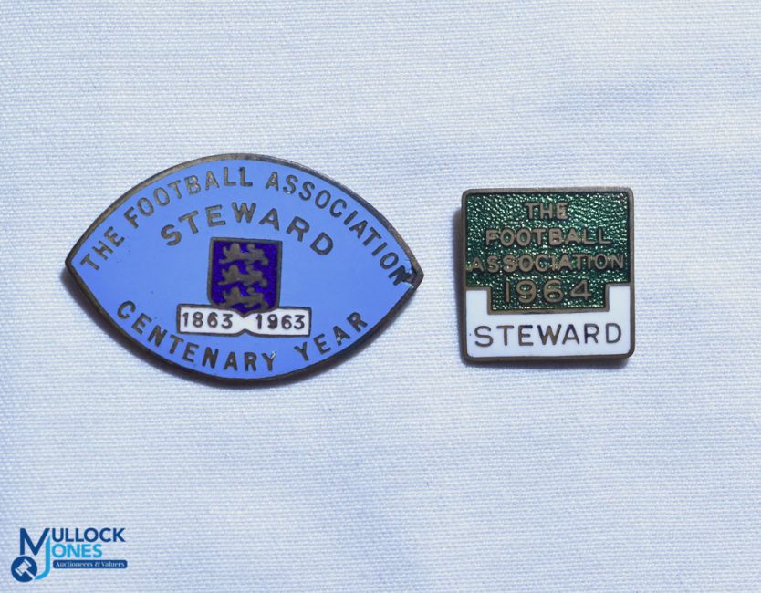 1964 + 1963 Centenary Year The Football Association Steward FA Enamel Badges, both pin backed (2)