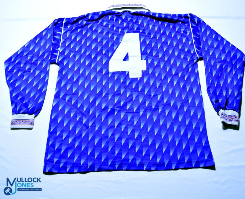 1991-1993 Cowdenbeath FC home football shirt - #4 Spall / Racewall. Size 42/44, blue, long sleeves