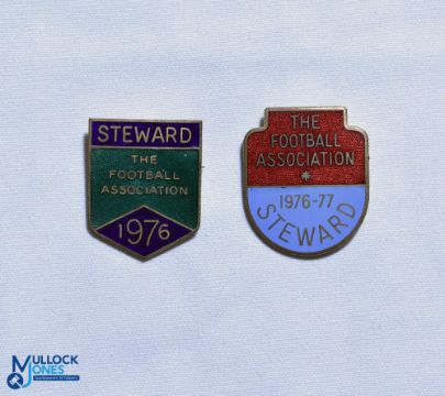 1976 + 1976-77 The Football Association Steward FA Enamel Badges, both pin backed (2)