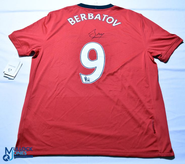 2009-2010 Manchester United FC home football shirt #9 Berbatov signed. Nike /AIG Size XL, red, short sleeves with tags.