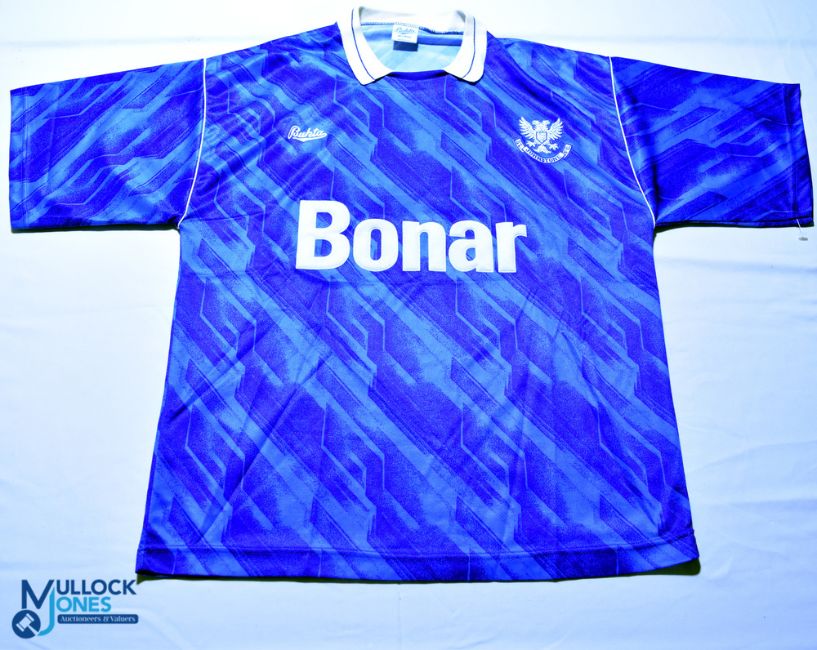 1990-1991 St Johnstone FC home football shirt - Bukta / Bonar. Size 42'' blue, short sleeves