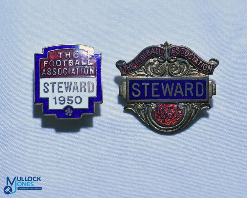 1950 + 1951 The Football Association Steward FA Enamel Badges, 1952 button back,1951 pin back (2)