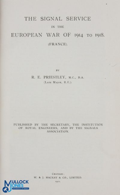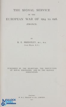 WWI - The Signal Service in the European War of 1914-1918 by R E Priestley, 1921. A comprehensive guide to the activities of the Royal Engineers signals corps during WWI. Rare t/w Shell Education Posters (10) - fine group of 10 original posters issued to schools by the Shell Oil Company in the 1950s/60s. Each poster features artwork by a leading illustrator of the time, together with an explanatory text, providing information on aspects of the countryside throughout the year. This collection covers most of the year, but lacks the months of June and July. Generally good condition, though there are a few creases and chips. Each measures 280 x 200 mm. (11)