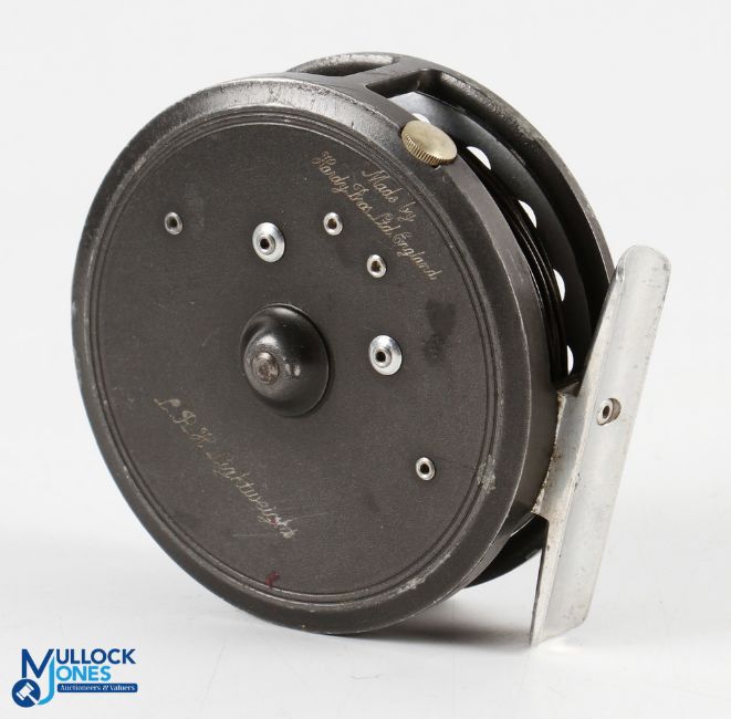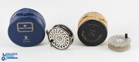 Hardy Bros "The LRH Lightweight" alloy trout fly reel and spare spool, 2 screw latch, black handle, milled rim tensioner, alloy reel seat and 2 screw line guide, light rim wear. Runs very well, both reels in MZC (2)