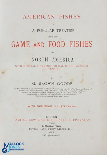1888 American Fishes: Goode E Brown A Popular Treatise upon the Game and Food Fishes of North America with Especial Reference to Habits and Methods of Capture - blue decorative boards, in good condition