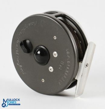 Hardy Bros "Marquis 6" alloy trout fly reel and spare spool 3 ¼" spool with 2 screw latch, black handle, rear tensioner, very good constant check, MZC and instructions. Light use
