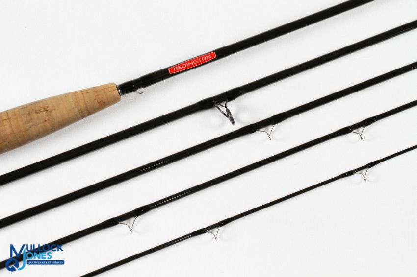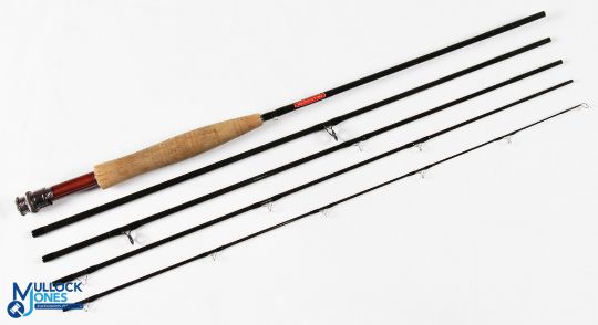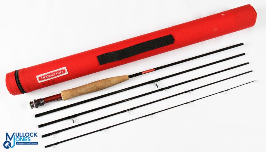 Redington USA Wayfarer carbon travel trout fly rod WFR 90615 9' 5pc line 6# alloy uplocking reel seat with wood insert and collars, lined stripping rings, MCB and Cordura tube. Light use