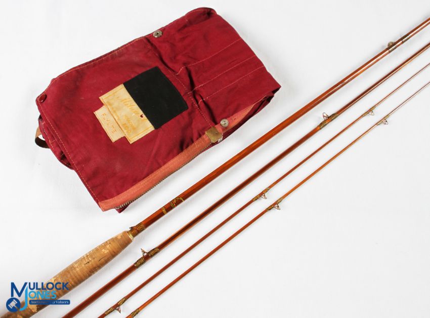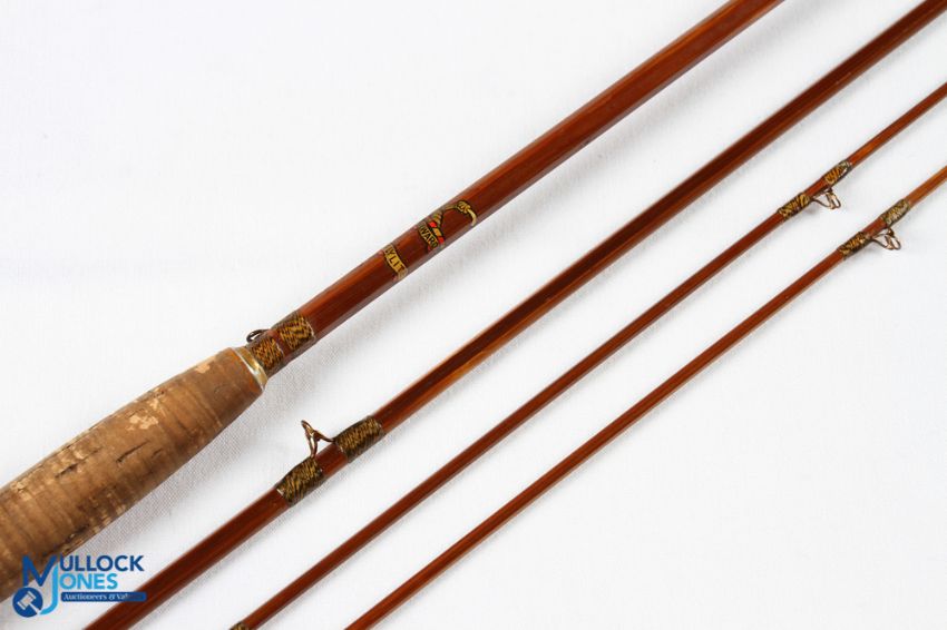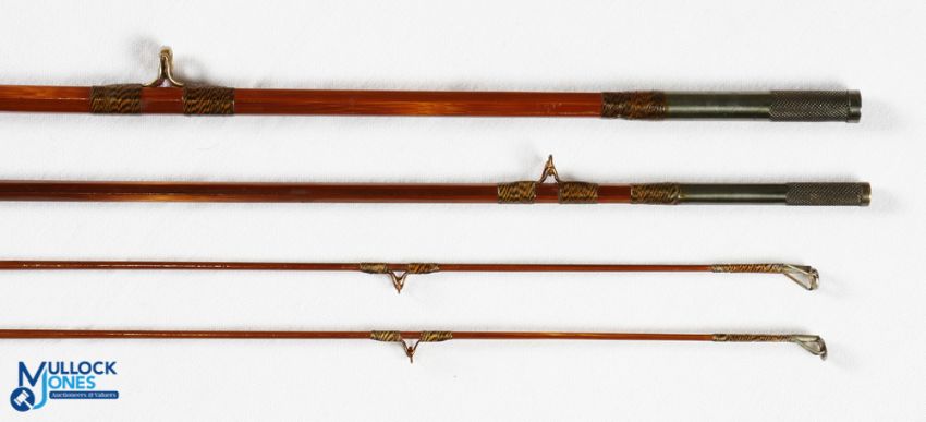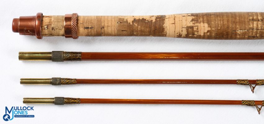 Millwards Flylite split cane trout fly rod 8' 3pc with spare tip No 5049, copper anodised reel fitting and collar, line butt/tip rings, MCB, looks tidy