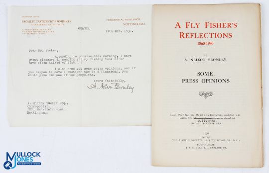 1930 A Fly Fisher's Reflections 1860-1930 A Nelson Bromley with a signed covering letter from author and booklet, some press opinions