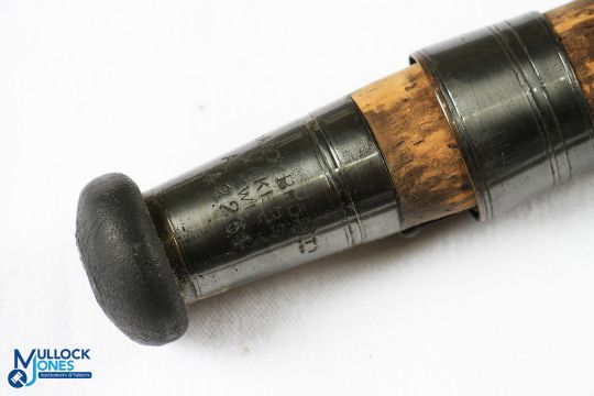 Hardy Alnwick greenheart trout fly rod No 42264 1898, 9' 3pc (tip 2" short), alloy sliding reel fitting, twist lock joints. MCB and alloy screw top, very good, Hardy shield