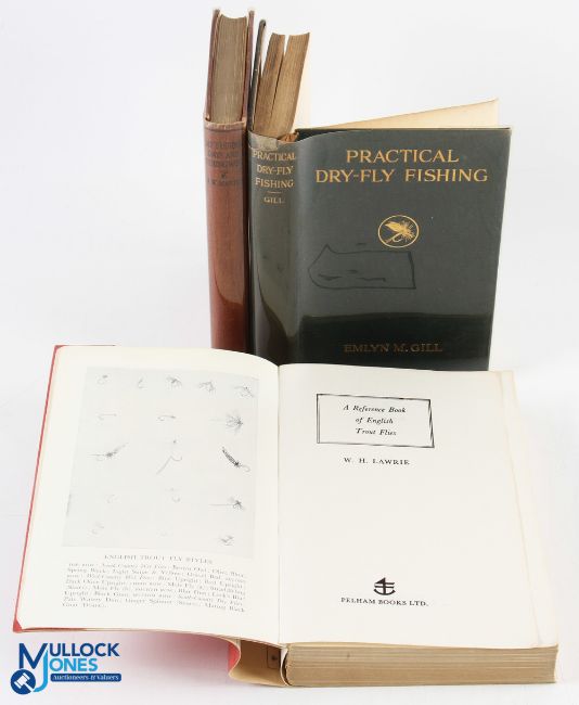 1912 Practical Dry Fly-Fishing Emlyn M Gill - no D/j part loose first end page, with 1924 new edition My Fishing Days & Ways J W Martin, a paperback reference book of English Trout Flies 1967 (3)