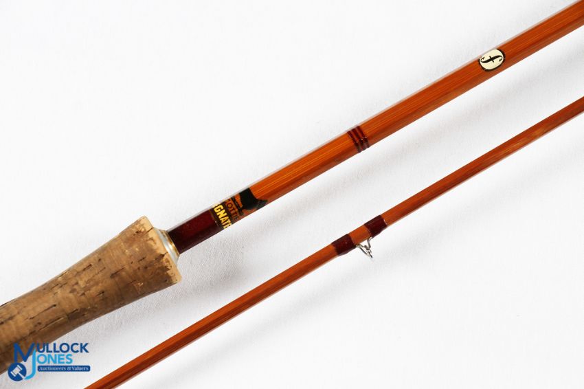 J S Sharpe Ltd Aberdeen split cane trout fly rod 9' 6" 2pc line 7 with 5" butt extension, alloy down locking reel seat, lined butt/tip rings, MCB, light use