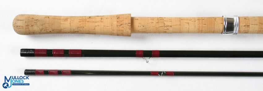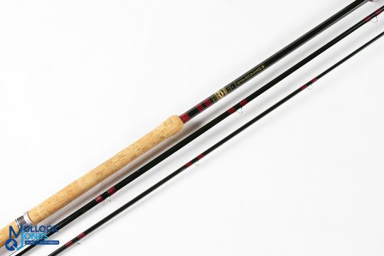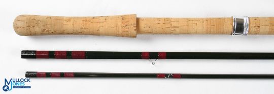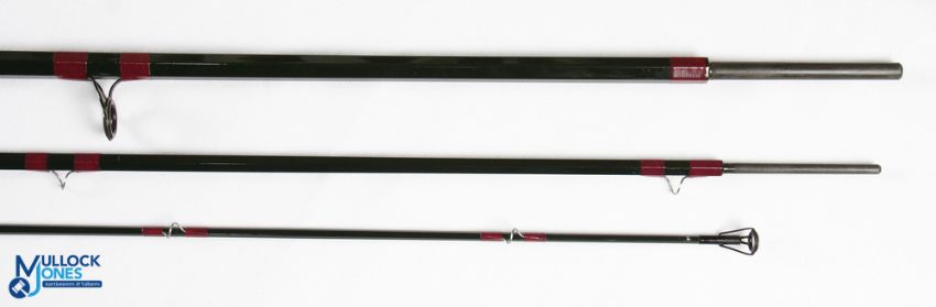 Bruce & Walker hand built green hexagraph salmon spinning rod 13' 3pc line 7/10#, 24" handle, alloy sliding reel fitting, lined butt/tip rings, MCB, light use