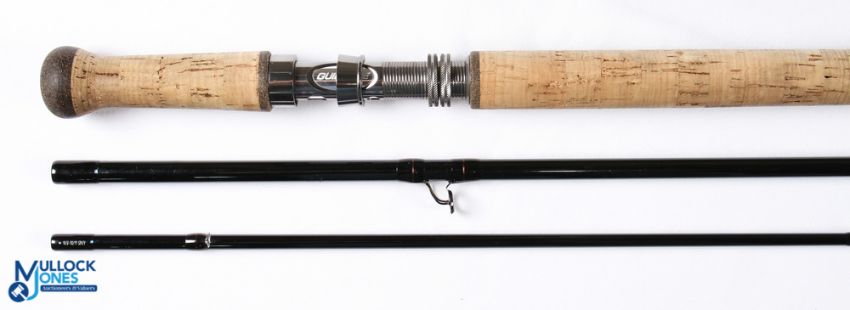 Guideline Lecte carbon salmon fly rod 14' 8" 3pc line 10/11# Spey, 24" handle with double alloy down locking HiTec reel seat, lined stripping rings, MCB and Cordura tube. Very light use