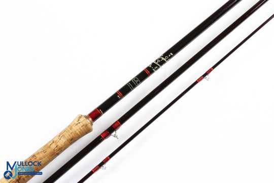 Hardy Graphite Salmon fly De-Luxe 13ft 9in 3 piece rod line#9, burgundy blank, 26" cork handle, gold anodised fittings, in MOB - t/w a Sharpes Aberdeen Wading Staff 54" length (2)