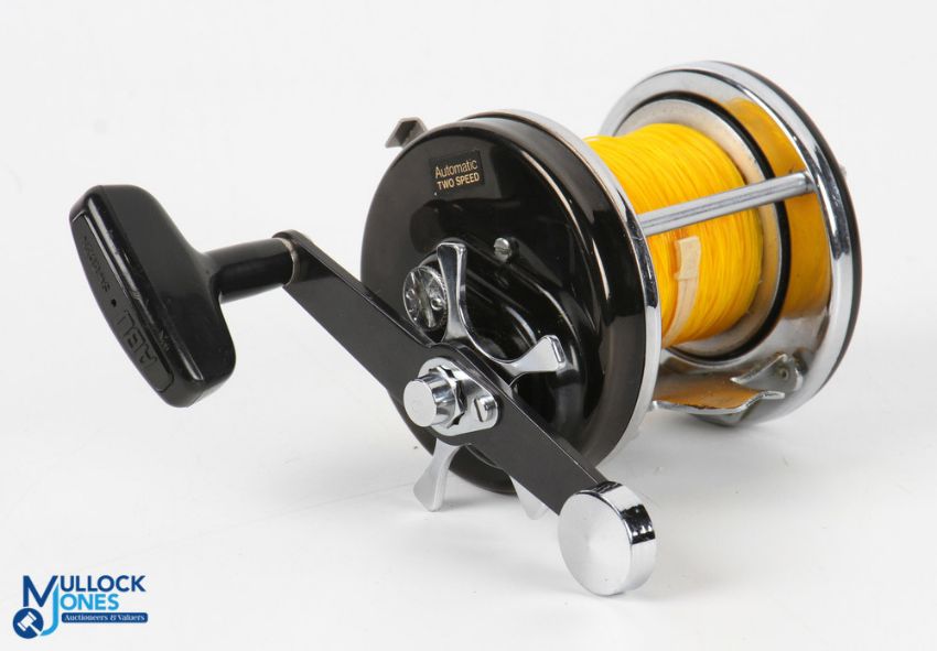 ABU Ambassadeur 9000C Multiplier Reel in black, with black counterbalance handle, on/off check, foot numbered 800400, runs smooth, appears overall good condition
