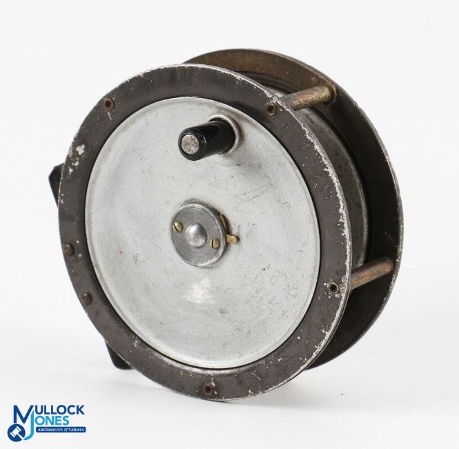 Hardy Bros "The Gem" light alloy trout fly reel 3 5/8" spool, 2 screw latch, black handle, rear tensioner, constant check. Light wear, runs well