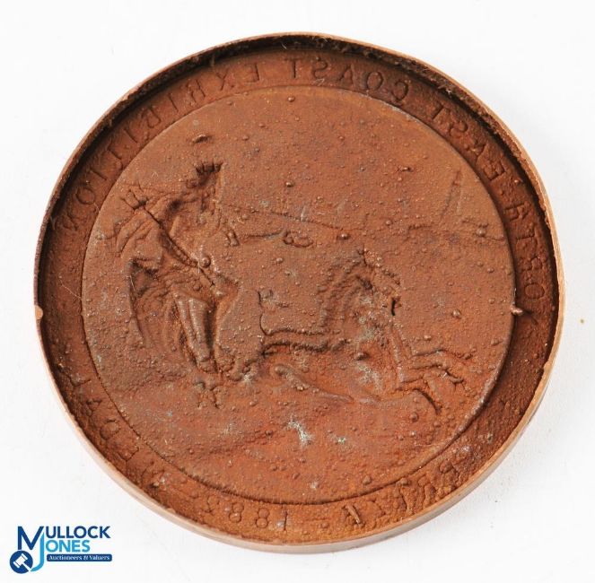 North East Coast Exhibition - Prize Medal 1882 - Vignette of Neptune with Lighthouse in background - Copper Prize Medal size 50mm (was meant to be affixed to a Traction Engine or machinery which won this prize)
