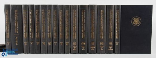 Scarce 1964 US Government Official J F K The Warren Commission Report in 26 Volumes plus Summary Report Investigation of the Assassination of President John F Kennedy: Hearings Before the President's Commission on the Assassination of President John F Kennedy by Warren, Earl etc, all in blue cloth with gold embossed, thousands of pages of these volumes that all manner of idiosyncrasies, contradictions, and potential leads big and small have been teased out by researchers since their publication. G+ (2 boxes)