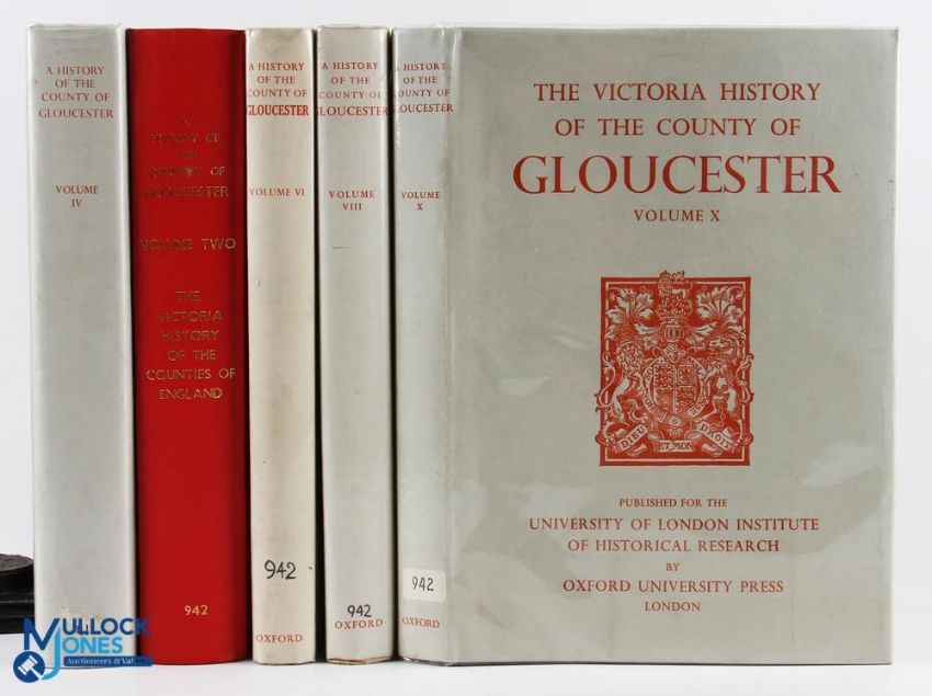 Gloucestershire - Victoria County Histories - Volumes II, IV, VI, VIII, X, 1907-1972. Many illustrations. Includes City of Gloucester Vol. IV & Borough & Hundred of Tewkesbury vol. VIII. Ex. Lib. (1 box)