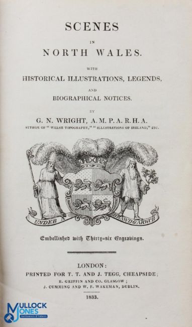 Scenes In North Wales, by G N Wright 1833 - 160 page book with 36 engraved views - also detailing text. In original board covers and leather spine, size 4.25" x 7"