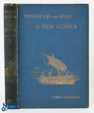 New Guinea Pioneer Life and Work in New Guinea by James Chalmers 1895 - 255 page book with over 40 illustrations, giving an interesting account regarding the author's life and work with the people of New Guinea and their life and customs etc- In blue cloth board cover, size 5.75" x 8"