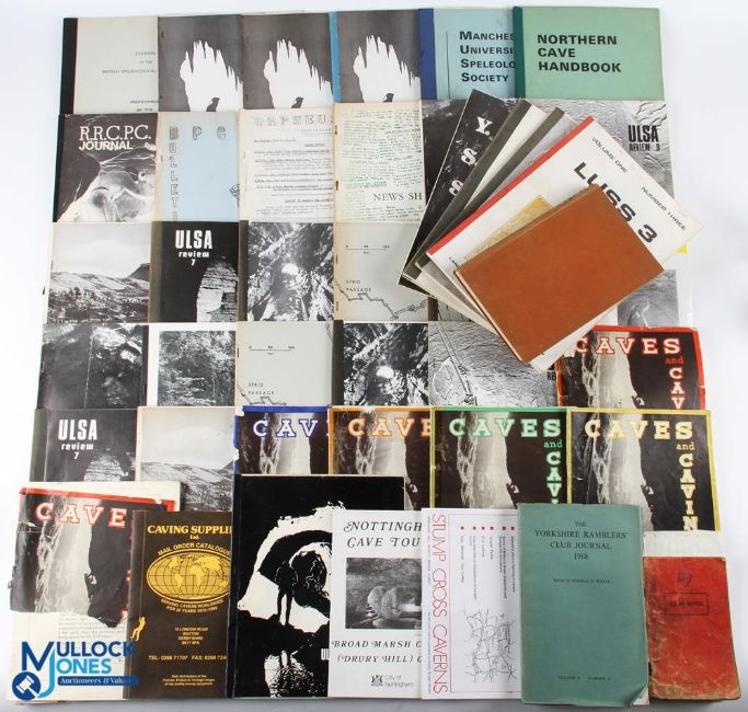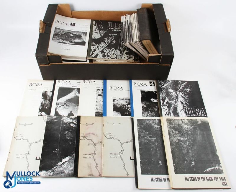 Caves and Caving A substantial collection including British Caving Research Ass 1978-86, 41 transactions and bulletins; ULSA - University of Leeds Speleological Ass, many publications; Caves and Caving 1938, various issues; publications of more local groups, Bradford et al. Books include British Caving 1st edt 1953. A small notebook relating to the exploration of Low Douk Cave with several sections, plans and notes in pencil made underground. Very many Maps, Plans, Sections etc. Throughout mostly relating to the Pennine area but also Wales. 2 boxes