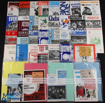 1969/70 Manchester Utd complete season of league aways including Spurs (March-postponed) (22), FLC Derby County + ticket, Burnley, Manchester City (FLC s/f), Watford (FAC 3rd/4th place at Arsenal); FAC Ipswich Town, Middlesbrough, Northampton Town (Best 6 goals), Leeds Utd (FAC s/f 2nd replay), Leeds Utd (FAC s/f + 2 tickets); Barrow (Lancs. Cup), Great Harwood (Lancs. Cup), Welsh International XI (Investiture match); fair/good. (A Lot)